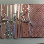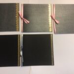 nr. 4-5. Sort Kort med Guldstribe 1 stk. med Lyserød & 1 stk. med Lyseblå Silkebånd. mål: 15×15 cm.