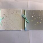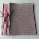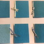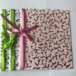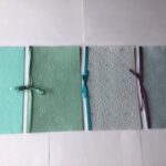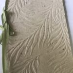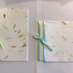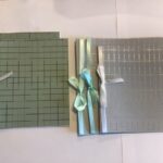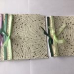 nr. 3-4. Håndlavet papir med – lysegrøn Silkebånd mål: 15×15 cm.