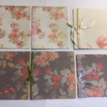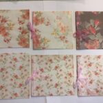 nr. 2-3. Lyseblå kort med blomster mønster- 1 stk. Sandfarvet & 1 stk. Grå Silkebånd.